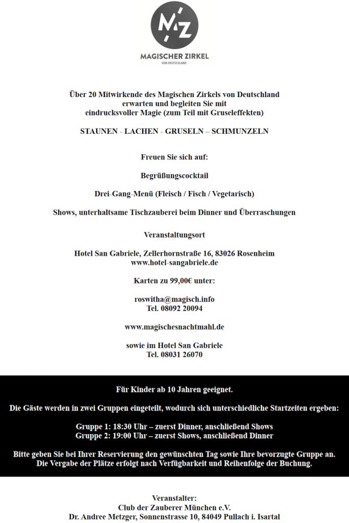 Zwischen Kerzenschein und kaltem Hauch erwartet dich ein Abend voller Magie, finsterer Geschichten und kulinarischer Versuchungen. Schon jetzt füllt sich die Gästeliste, und die wenigen verbleibenden Plätze schwinden schneller, als man flüstern kann.